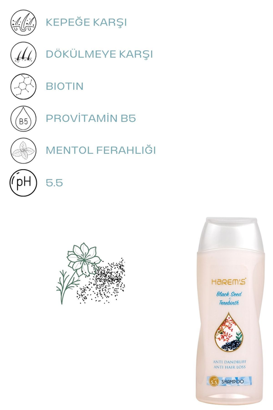HAREM'S 350 ml Siyah Kimyon ve Menengiç İçeren Saç Dökülmesine Karşı Yenileyici Şampuan